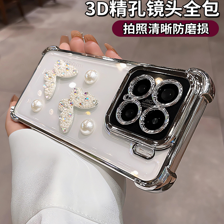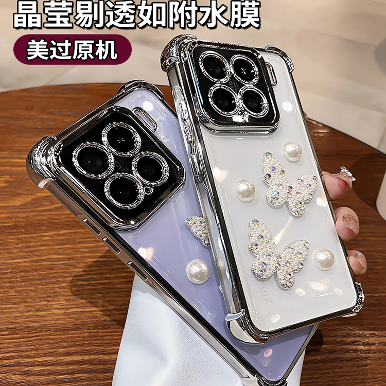蝴蝶珍珠适用小米15手机壳新款小米14超防摔13pro透明12pro天玑版高级红米note14镜头全包civi气囊红米K80女