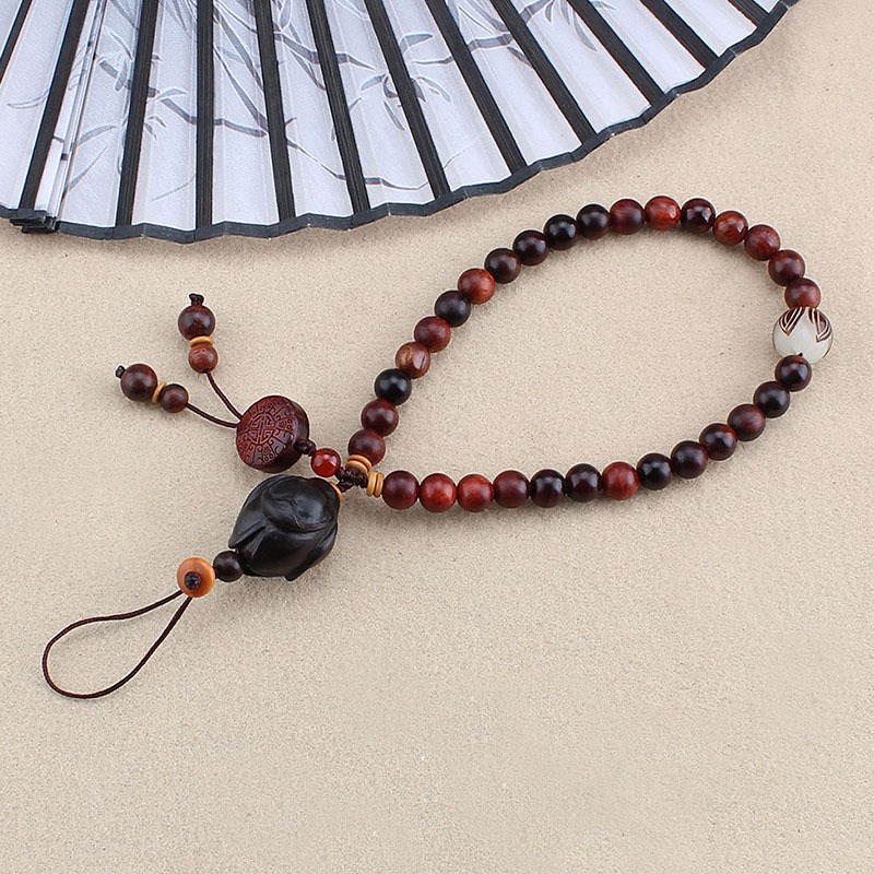 文艺复古风大红酸枝木珠编织短款手机链可拆卸手腕绳手机防丢链绳