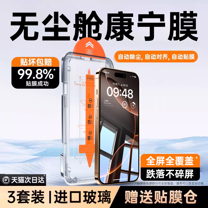 绿联康宁膜适用iPhone17ProMax钢化膜苹果16Pro手机膜无尘仓贴膜15pm无黑边防窥13新款14Plus高清保护防尘Air