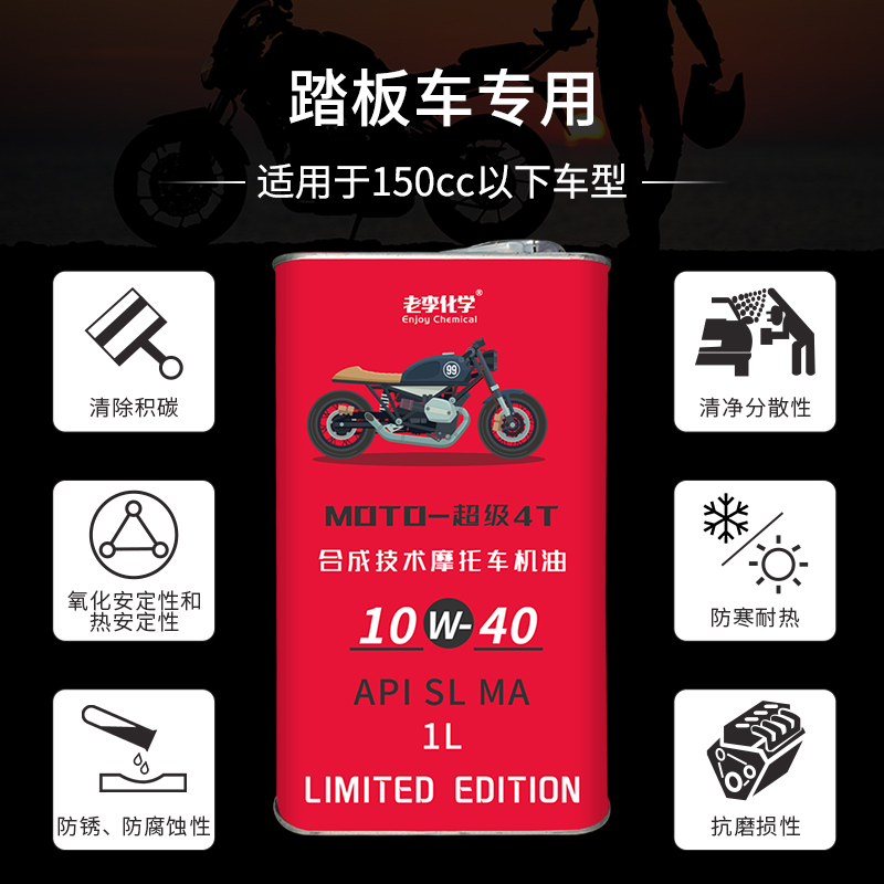 老李化学超级4T踏板摩托车机油10W-40合成机油 四季通用SL级 1L