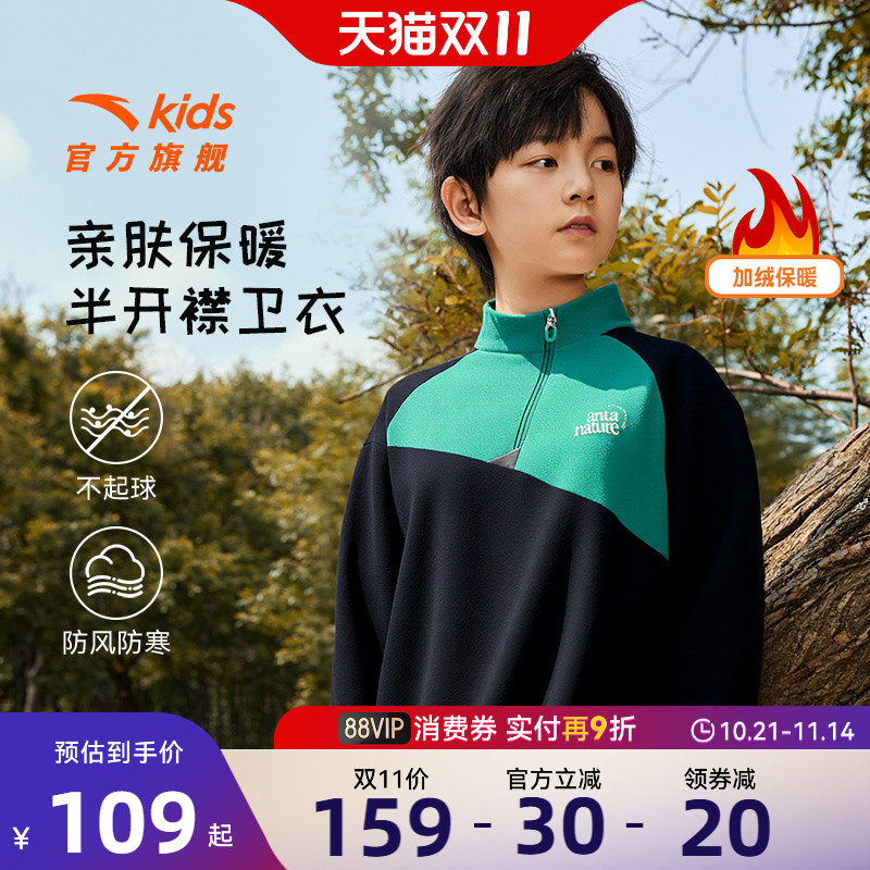 安踏儿童卫衣男童套头衫户外2025秋冬新款保暖中大童加绒长袖上衣