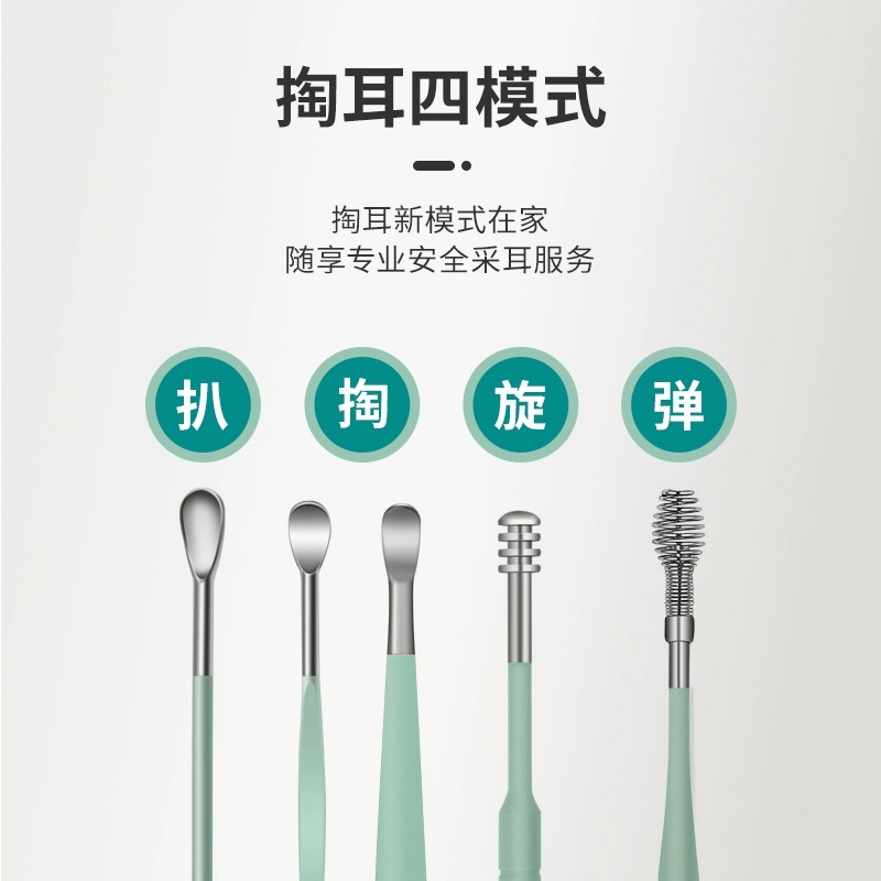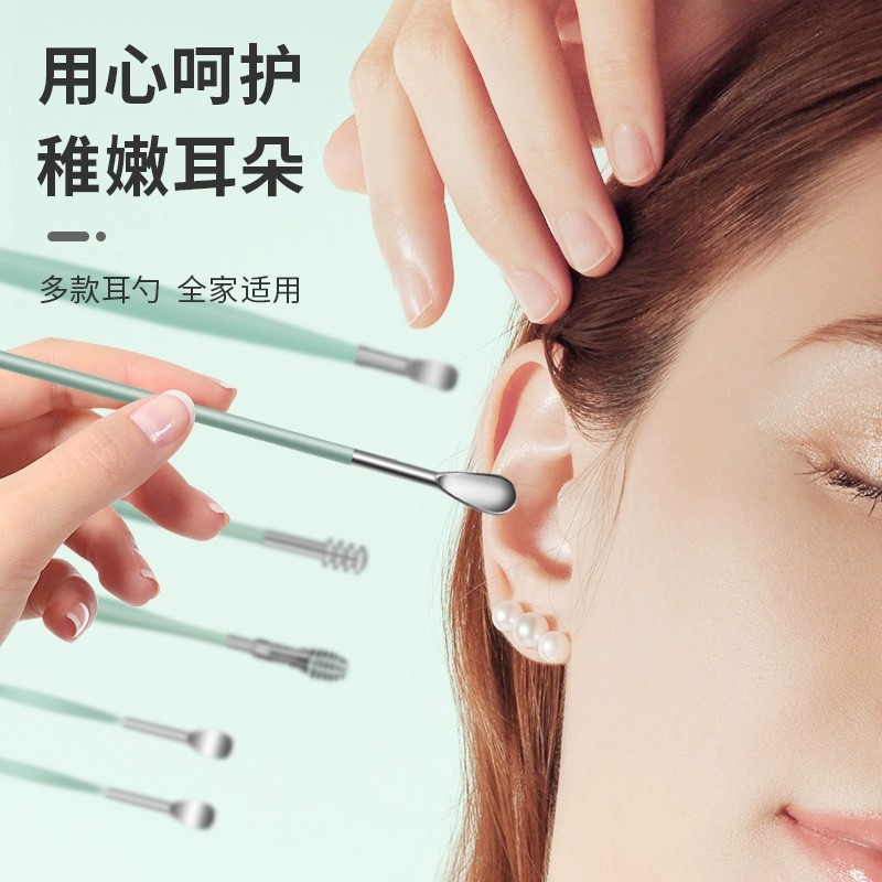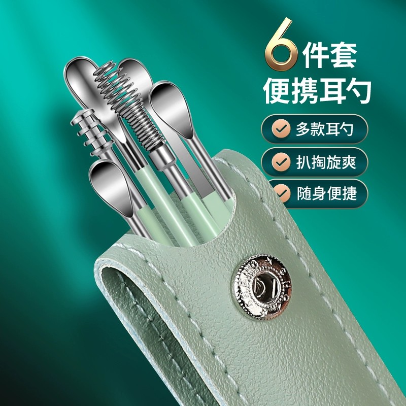 挖耳勺套装采耳工具不锈钢掏耳朵神器螺旋式便携皮包扣耳屎扒家用