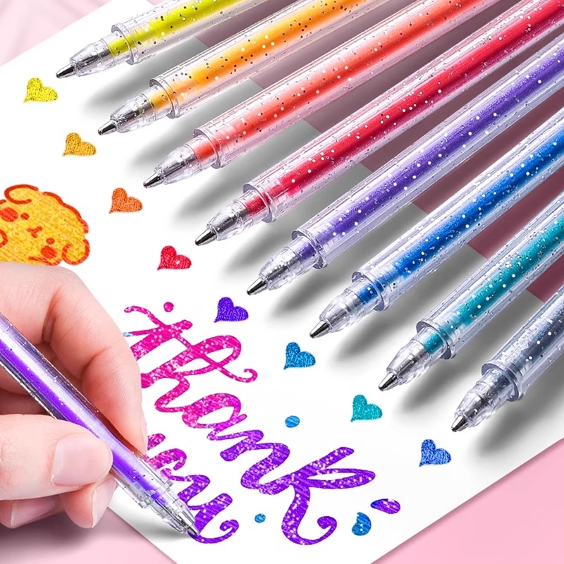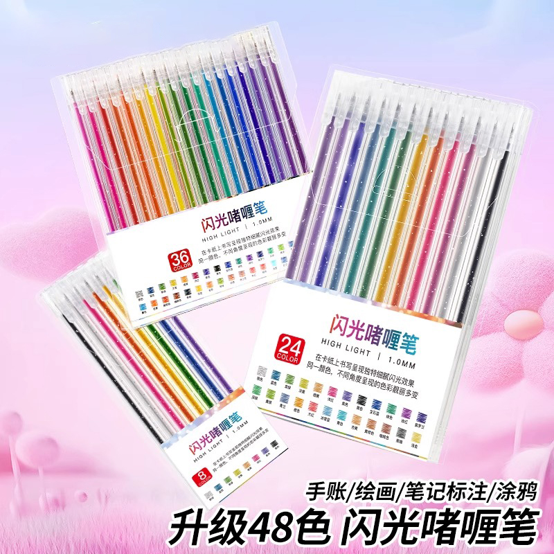 彩色闪光笔啫喱发光亮晶晶流沙银光变色做手账的手帐专用珠光标记儿童做笔记闪亮金属轮廓闪粉水彩笔荧光爆闪