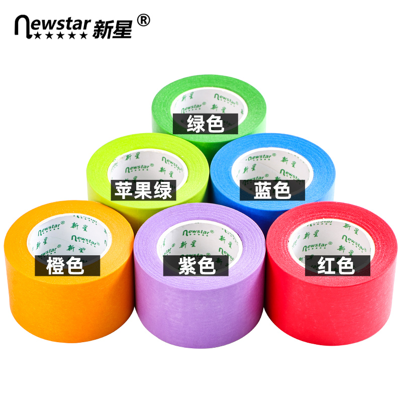 小卷芯彩色美纹纸和纸胶带绘画黄绿蓝紫红色低粘性2cm10公分婚房刷漆汽车喷漆防水无痕标识标签贴纸加宽胶布