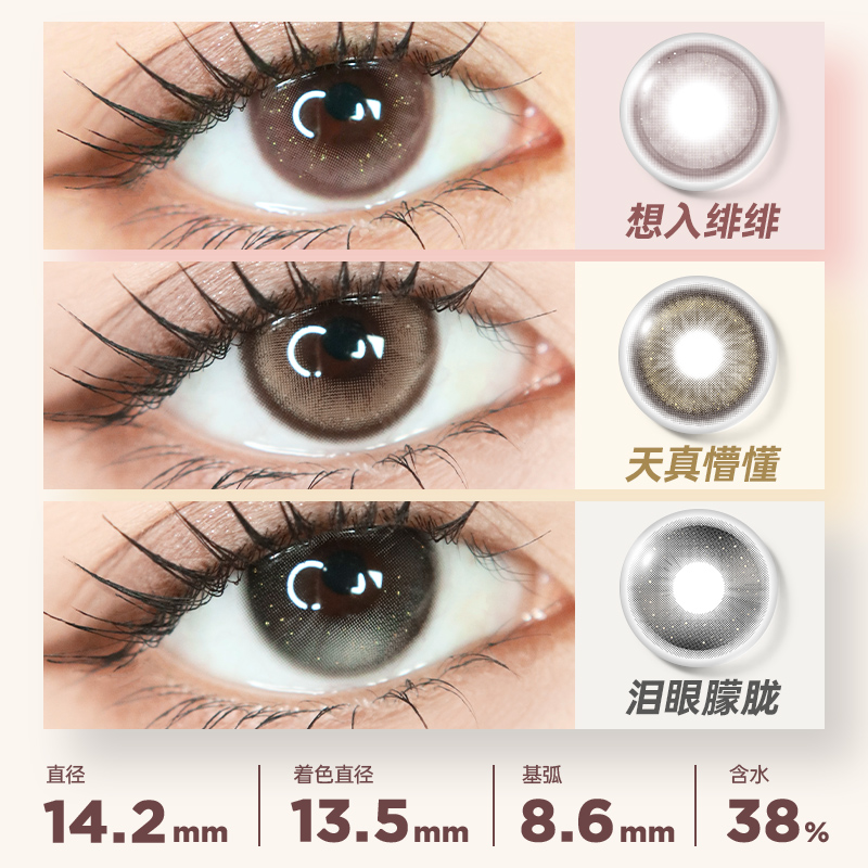 拉拜诗美瞳日抛伞语10片三明治工艺彩色隐形眼镜旗舰店木槿茶棕