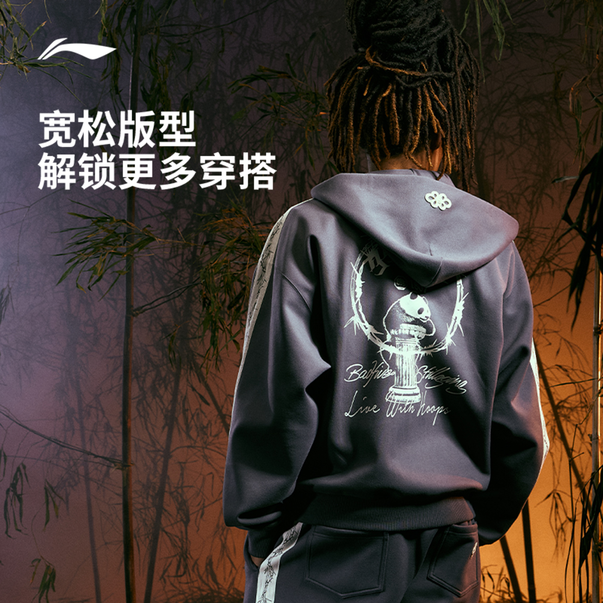 李宁反伍BADFIVE少不入川卫衣男开衫长袖外套宽松秋季上衣运动服