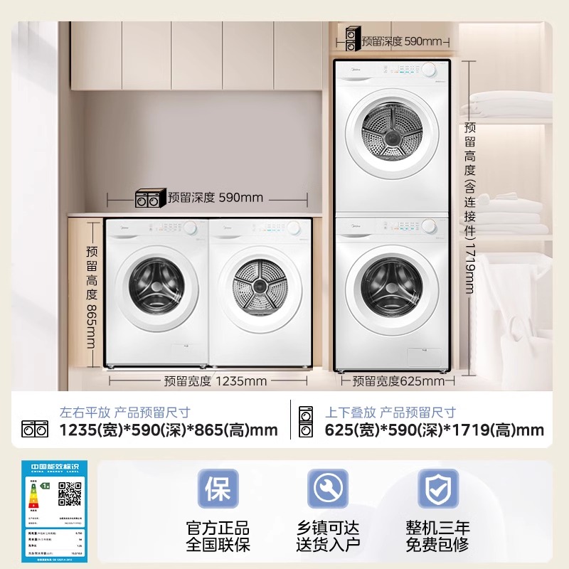 【以旧换新补贴】美的10kg热泵洗烘套装组合除菌洗衣机烘干机V11F