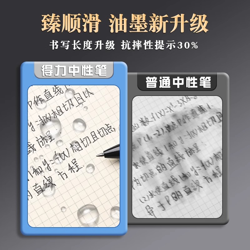 得力臻顺滑按动中性笔s08pro刷题笔子弹头黑色0.5mm水笔圆珠笔速干笔学生专用抗摔签字笔碳素笔高级舒适
