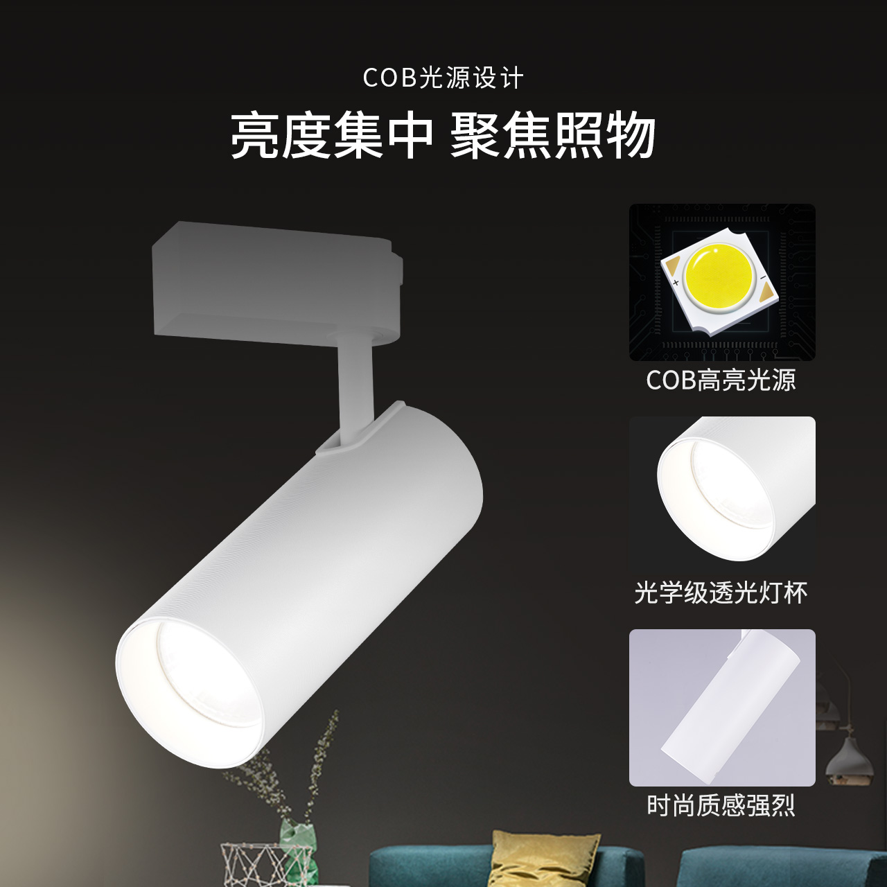 雷士照明LED轨道射灯服装店商用背景墙吸顶明装天花35瓦cob导轨灯