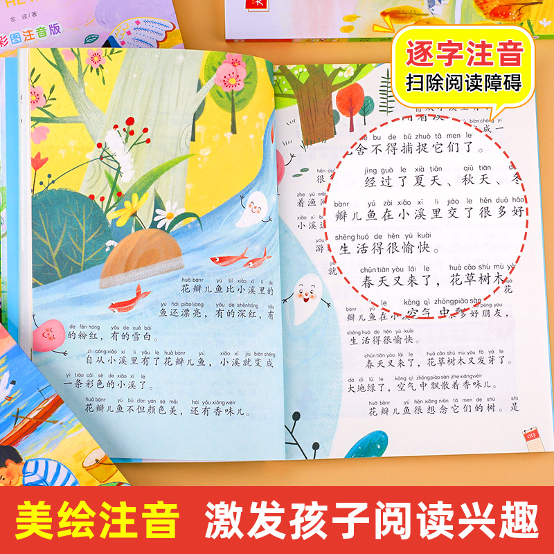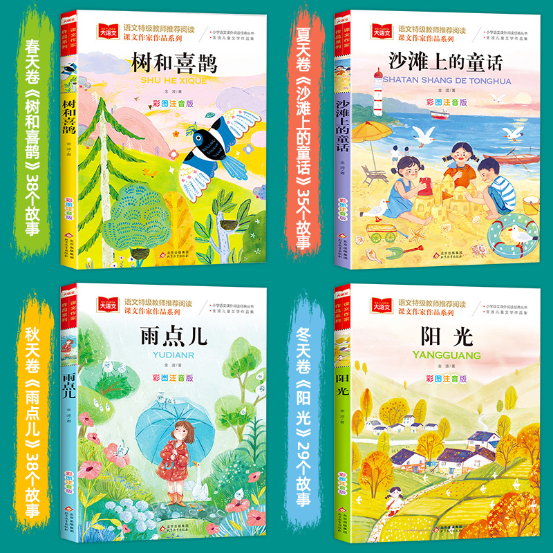 金波四季童话美文注音版全套4册树和喜鹊沙滩上的童话雨点儿一二年级阅读课外书必读老师推荐上下册儿童作品精选正版书籍经典寓言