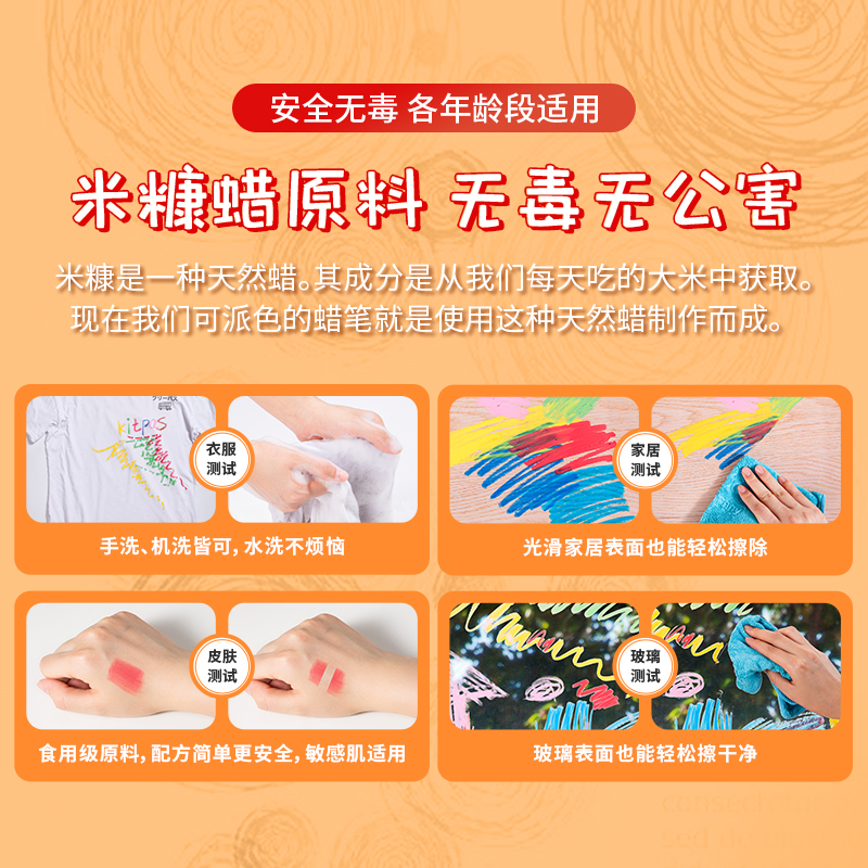 日本制kitpas2024日本文具大赏第1名米糠蜡笔安全小学生幼儿园专用不沾可水洗玻璃可擦不脏手油画棒儿童宝宝