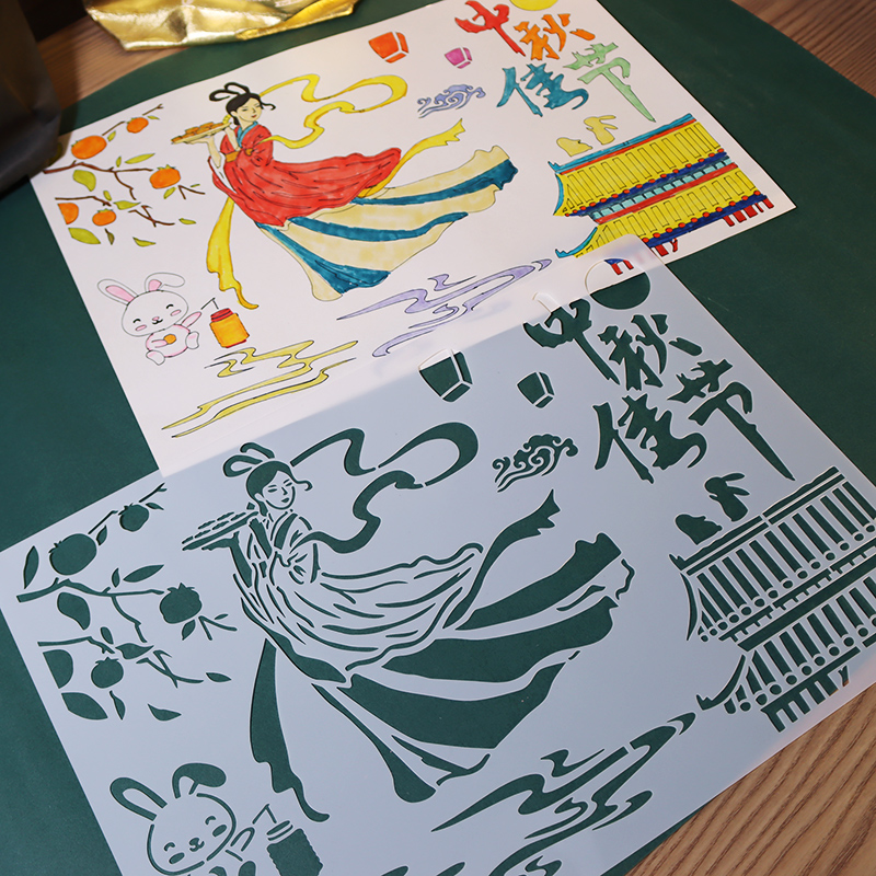 中秋节手抄报镂空模板8K一二三四年级小学生节日A4手工画画模具尺