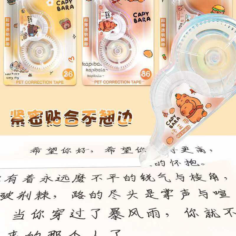 卡通修正带高颜值ins风大容量学生涂改修正卡皮巴拉透明膜改正带