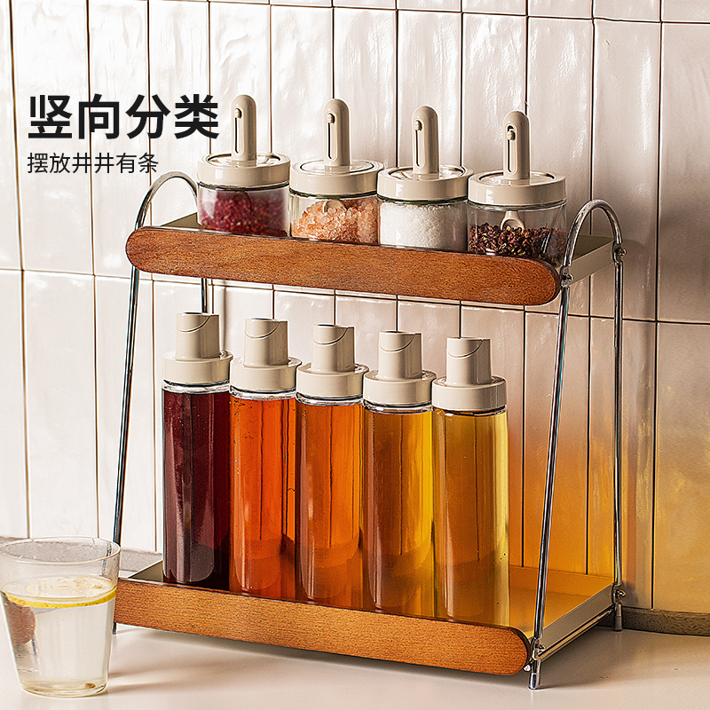 摩登主妇中古风调料品置物架多功能厨房台面调料罐调味料瓶收纳架