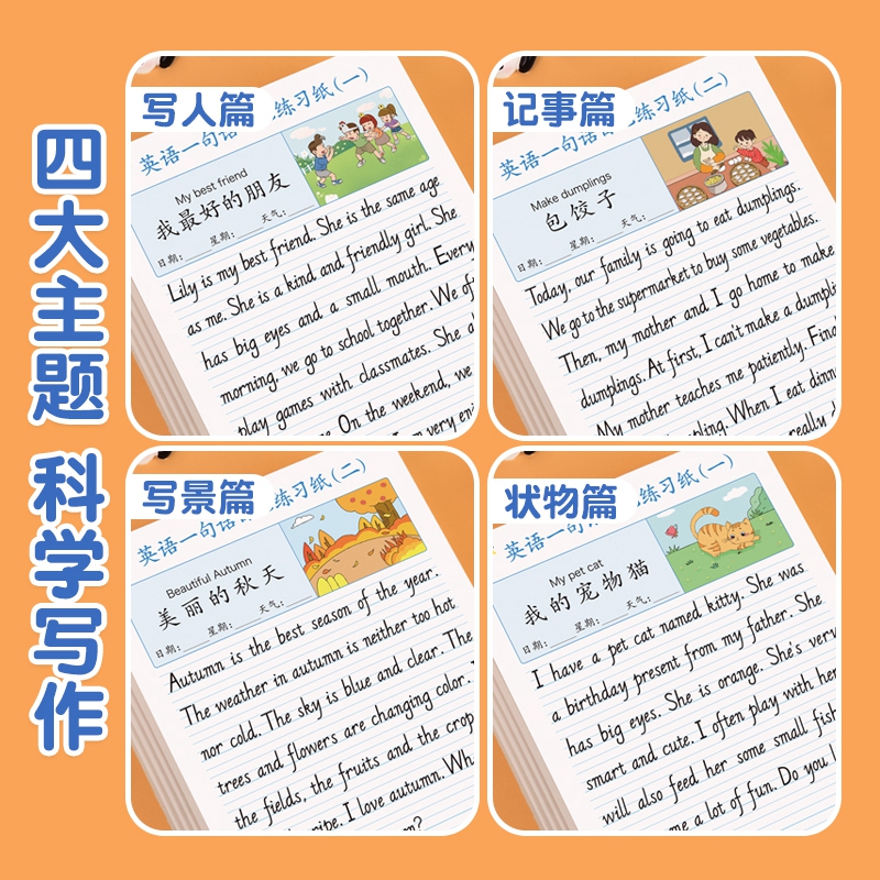 小学英语一句话日记练习纸定位英语本每日一练二三四五年级看图写话练习纸本儿童英文作文提升训练写作练字帖