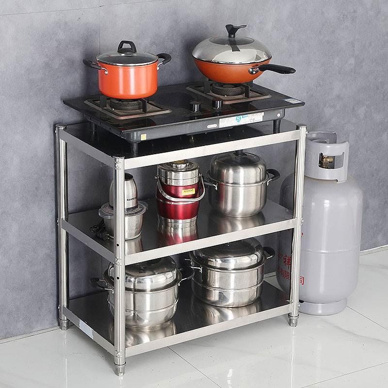 厨房2层加厚不锈钢置物架3层落地锅架烤箱收纳微波炉灶台架子包邮