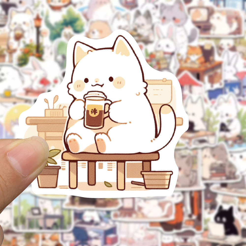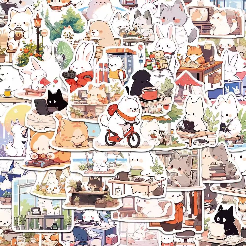 50张小动物们的一天贴纸q版可爱卡通手机壳笔记本装饰防水diy贴纸
