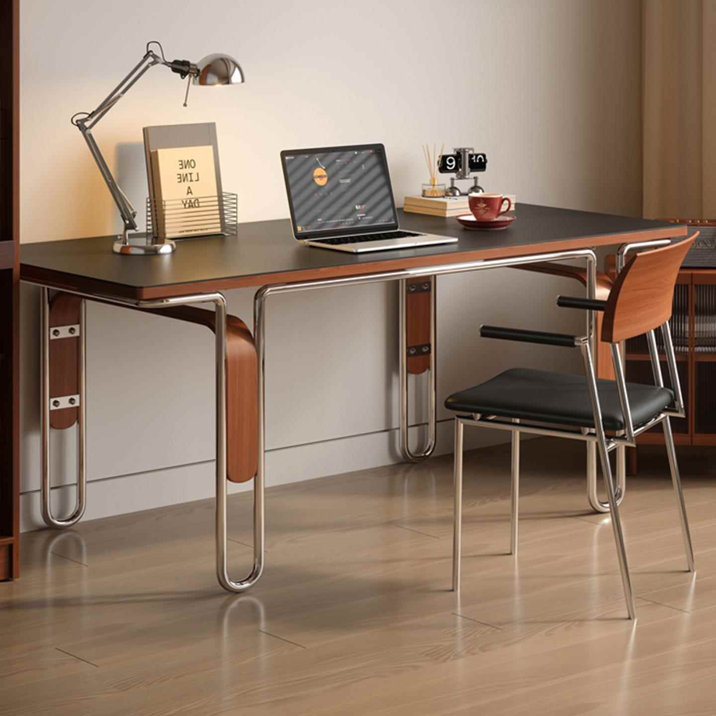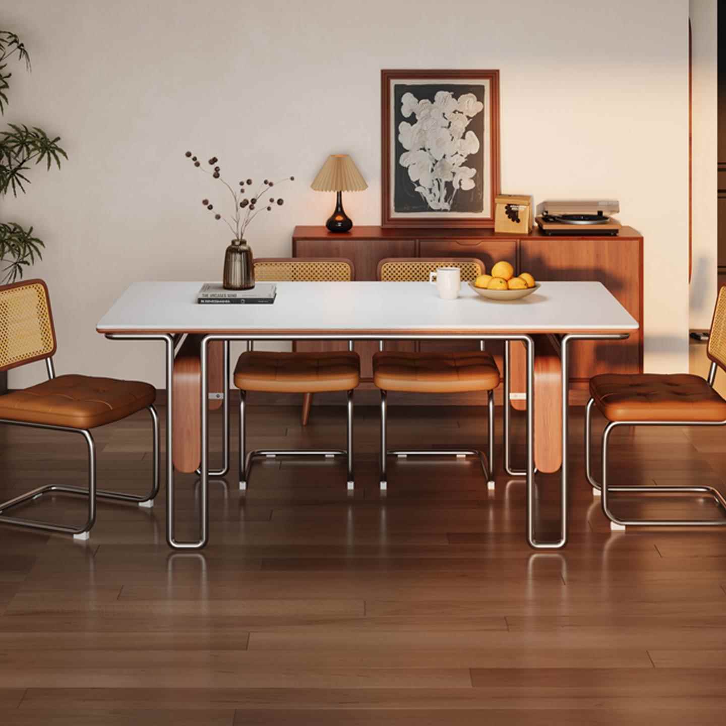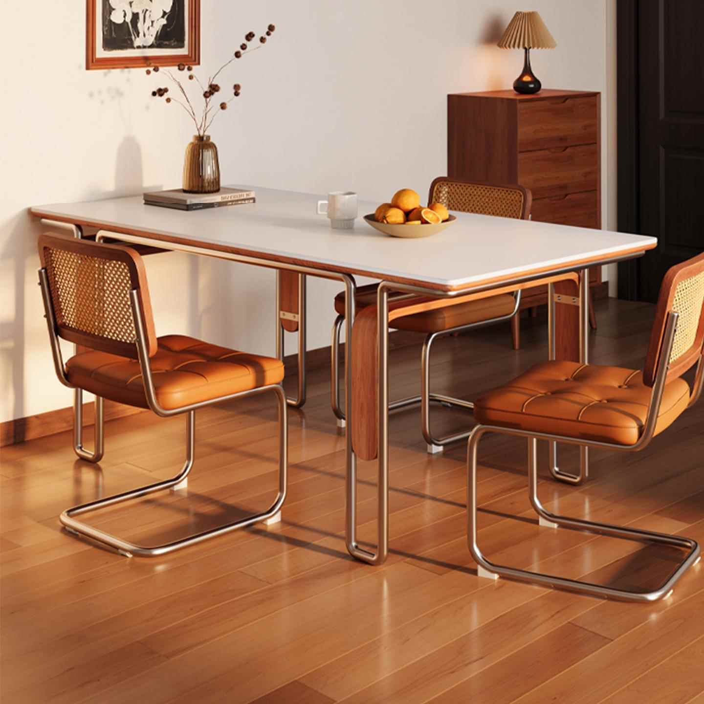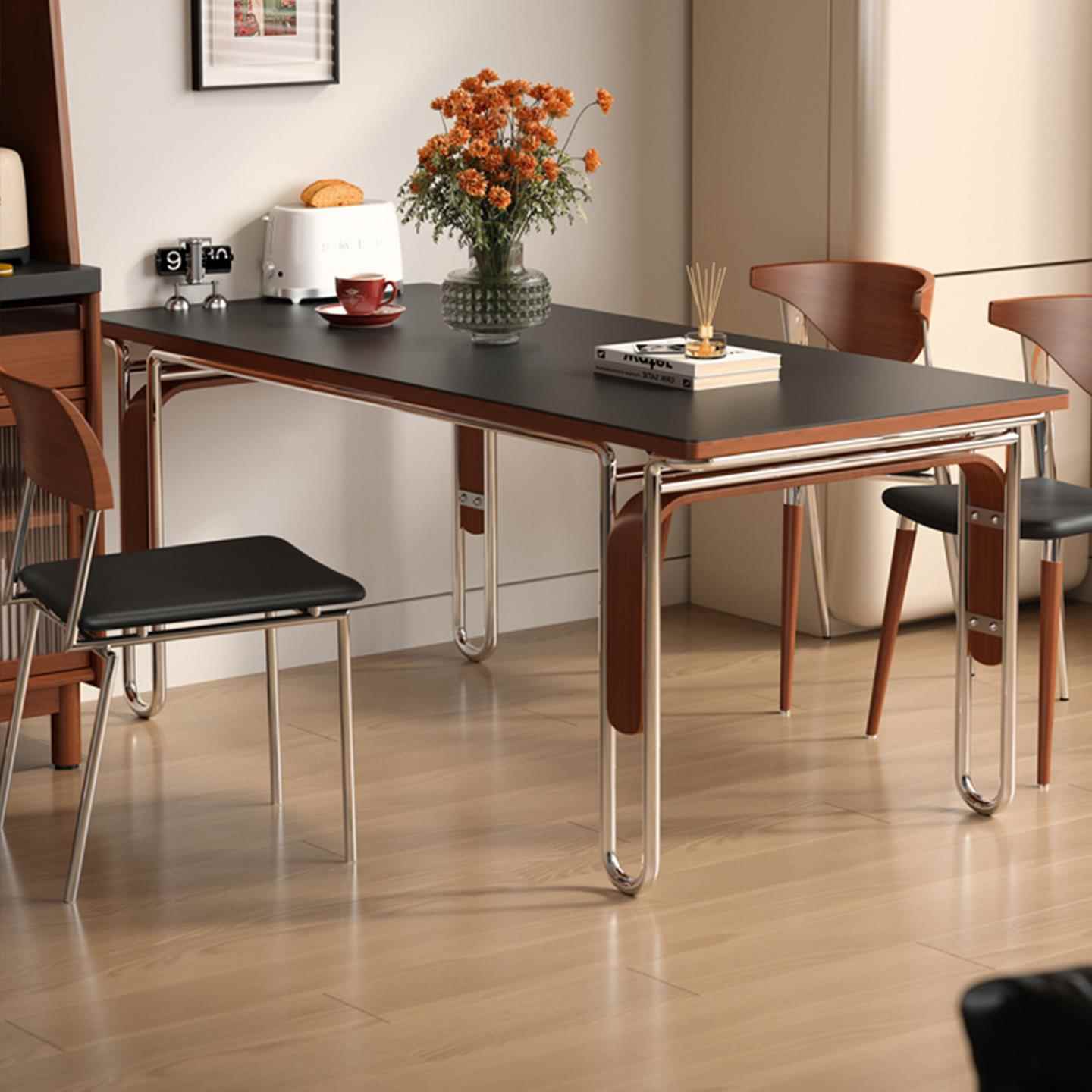 鹏音伴中古岩板实木餐桌北欧不锈钢包豪斯复古饭桌小户型家用长方形桌子摆件饰品