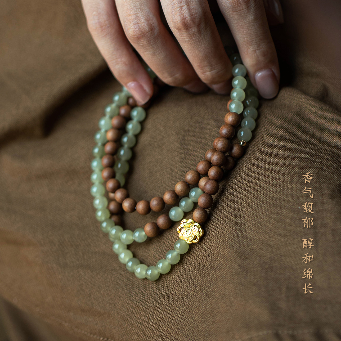 大善堂天然芭比檀木和田玉手串原创国风佛珠手链文玩念珠送女友礼