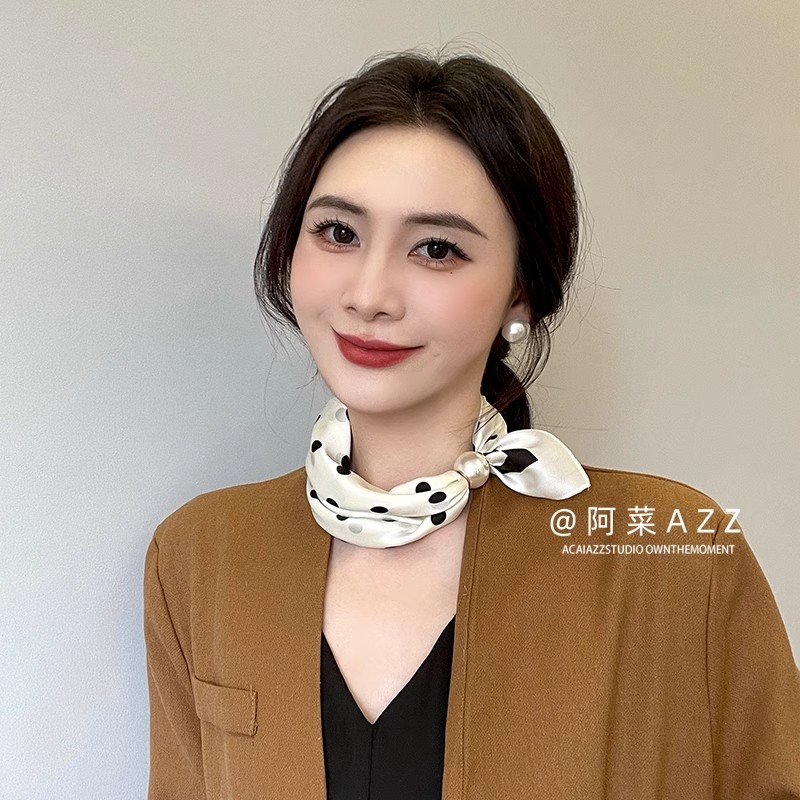 棕色波点丝巾印花高级百搭配饰系脖女2025年新款发带绑发长条围巾