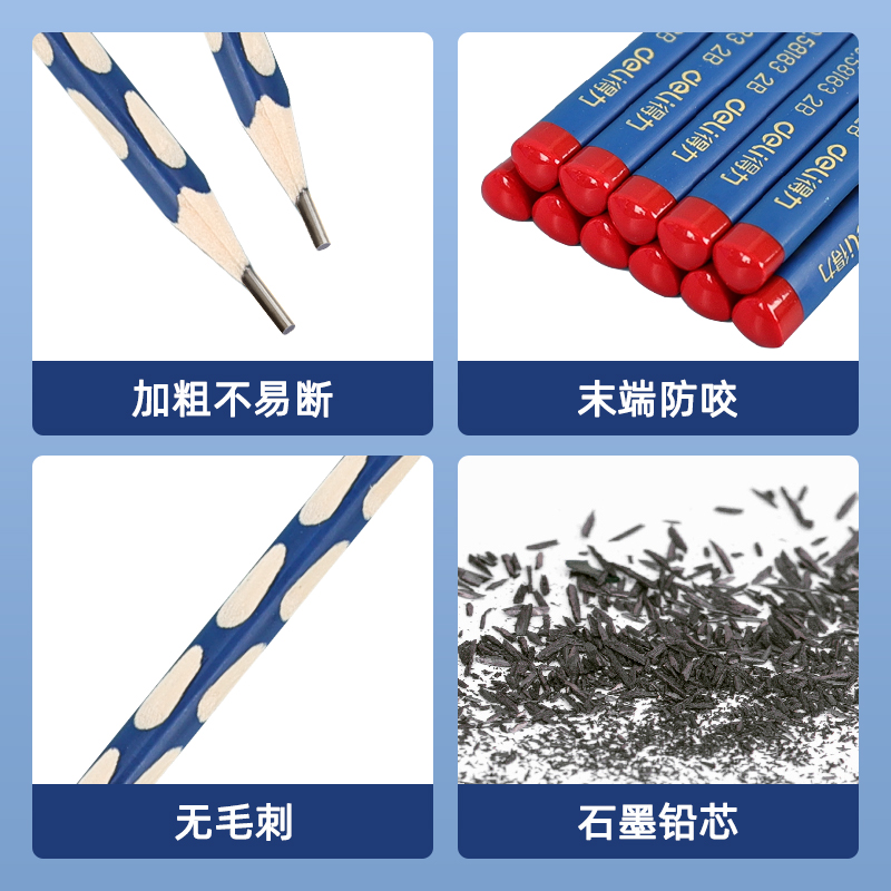 得力洞洞铅笔小学生专用无毒一年级幼儿园初学者粗杆专用加粗洞洞笔儿童三角杆无铅正姿hb练字矫姿2b2比考试