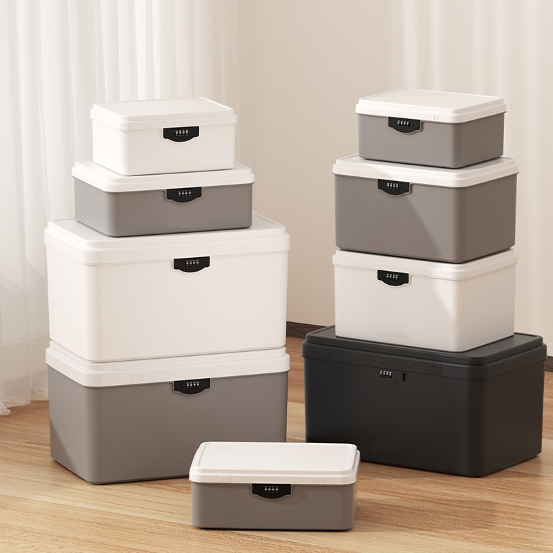 带锁收纳箱密码箱家用贵重物品塑料储物箱文件证件收纳盒密码锁