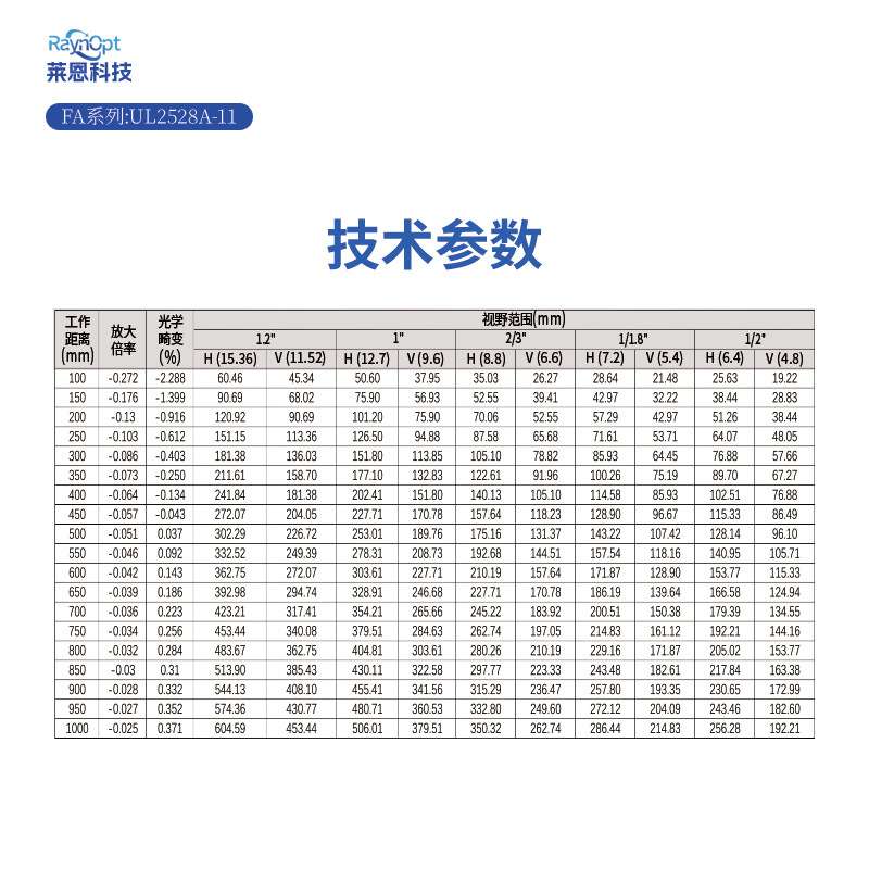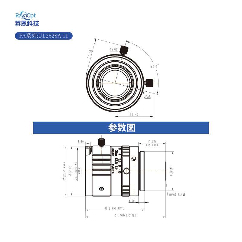莱恩UL2528A-11镜头高清晰度无热化不虚焦C接口工业变焦长焦光学