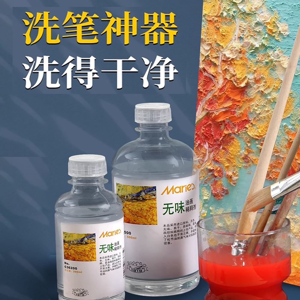 马利绘画用松节油无味调色油油画塑性颜料专用上光油洗笔液稀释剂调和油清洗剂亮光油媒介剂去污画笔清洗工具