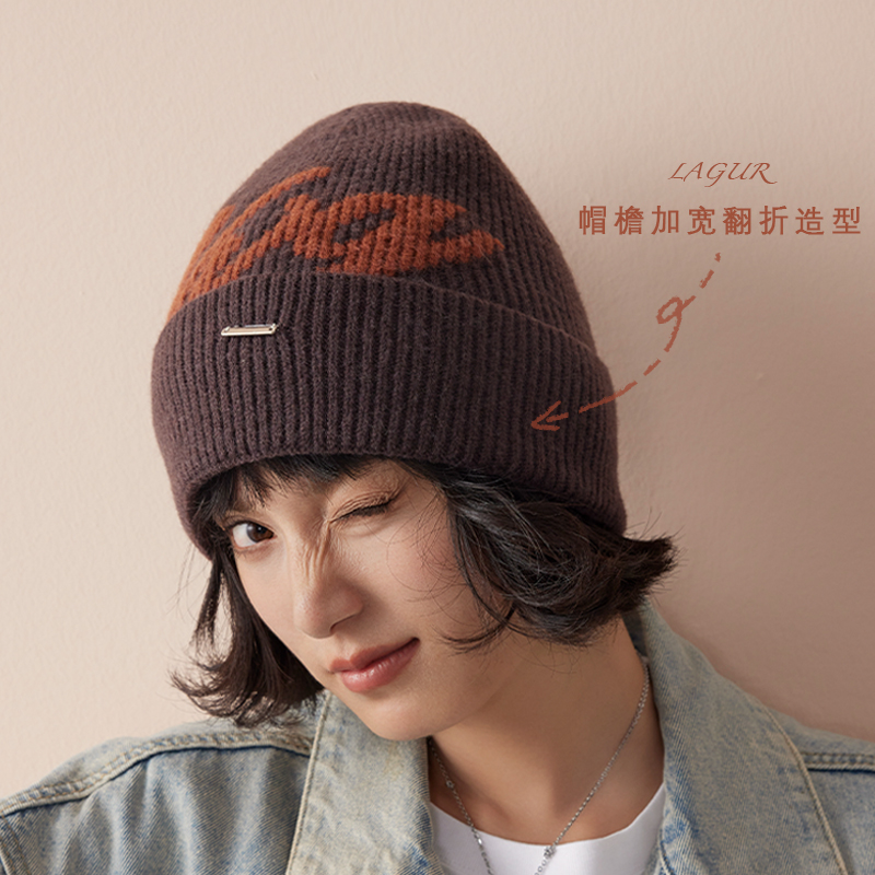 显脸小神器针织字母冷帽ins风韩系百搭护耳毛线帽保暖女冬季加厚