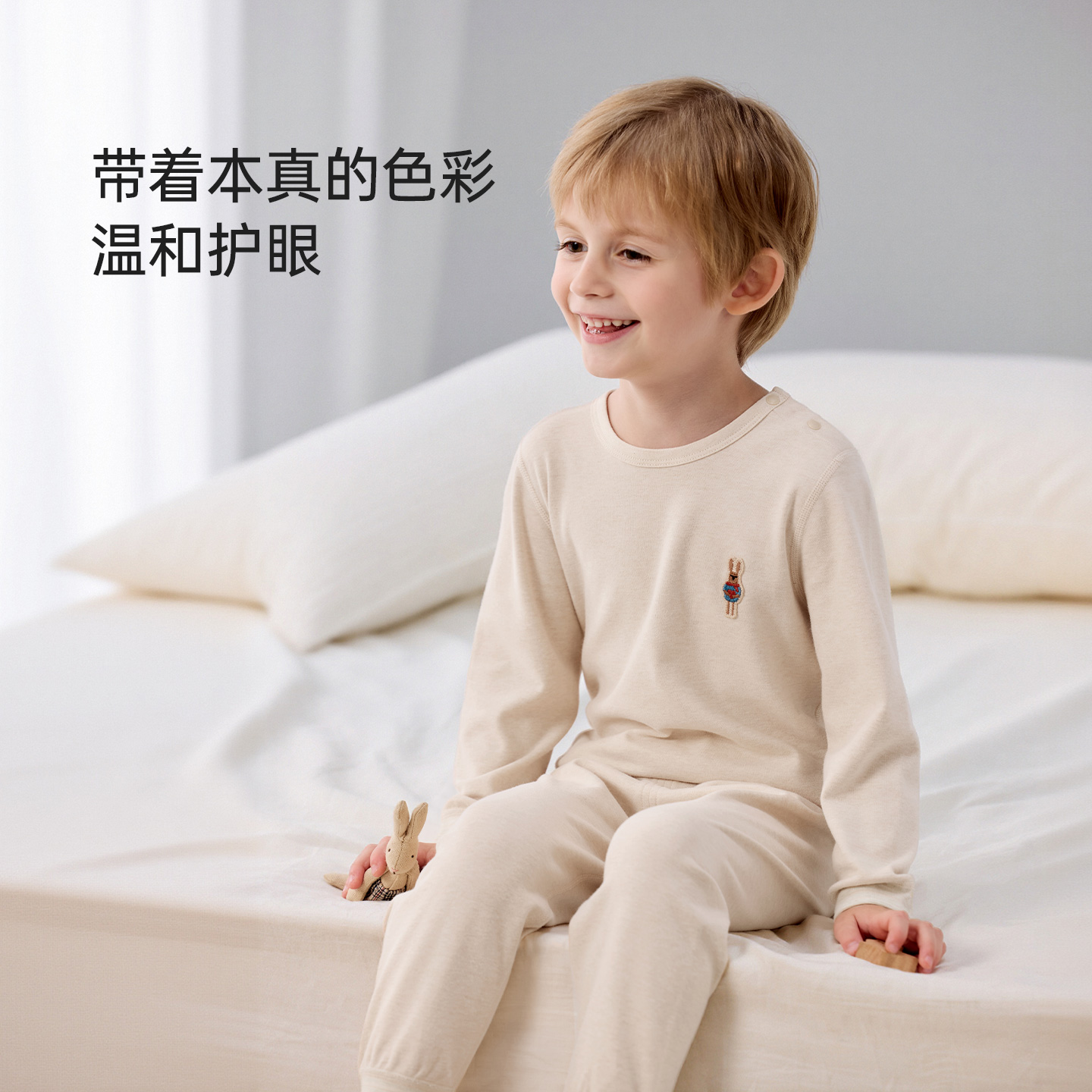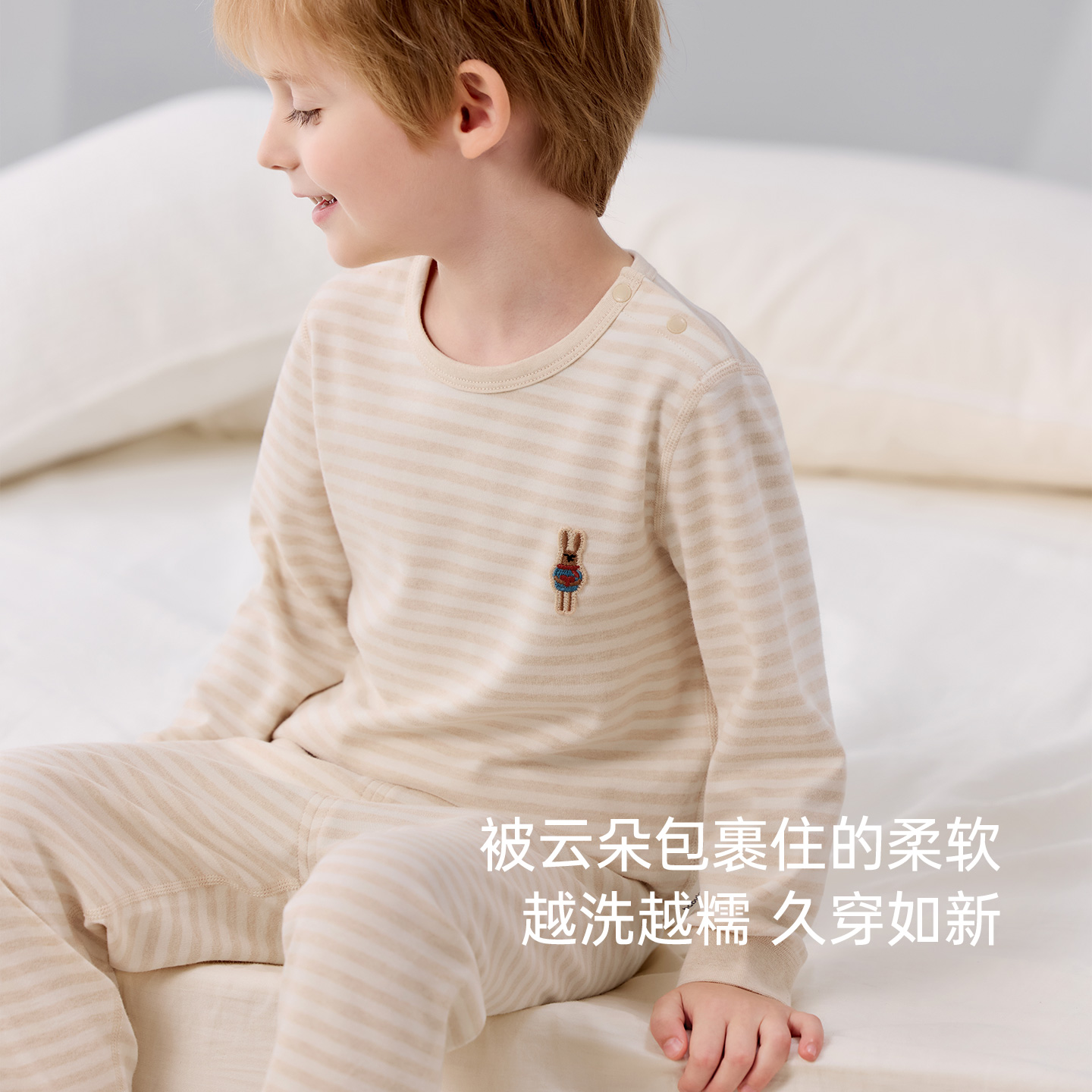babylove宝宝内衣套装春秋季彩棉分体家居服婴幼儿纯色睡衣两件套
