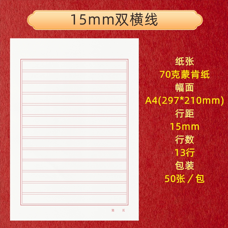 硬笔书法纸蒙肯纸A4横线竖线练习纸作品纸比赛用纸多款包邮热卖