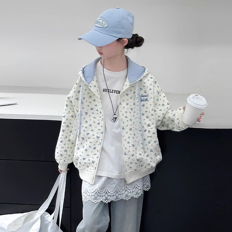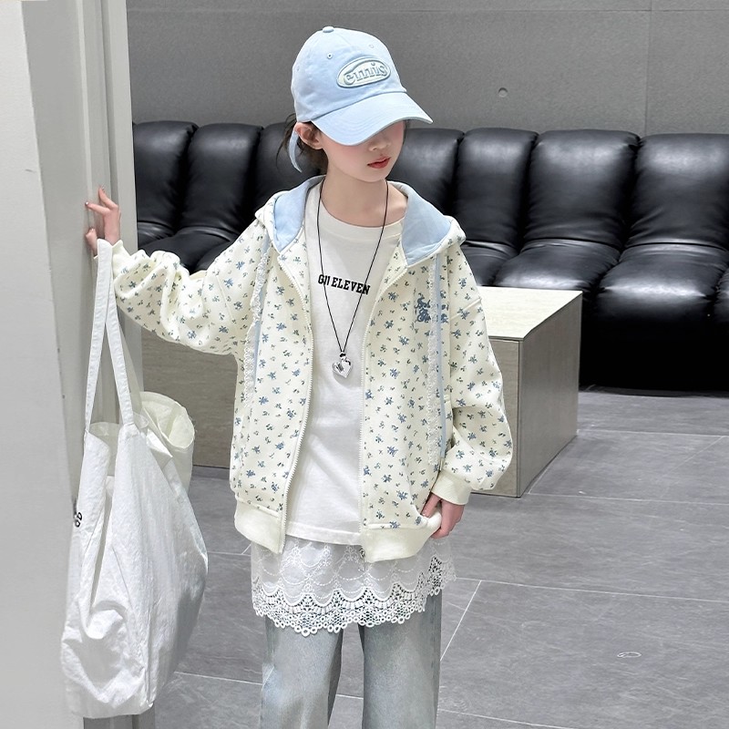 女童外套春秋款2025新款女大童学生春装上衣儿童洋气韩版碎花开衫
