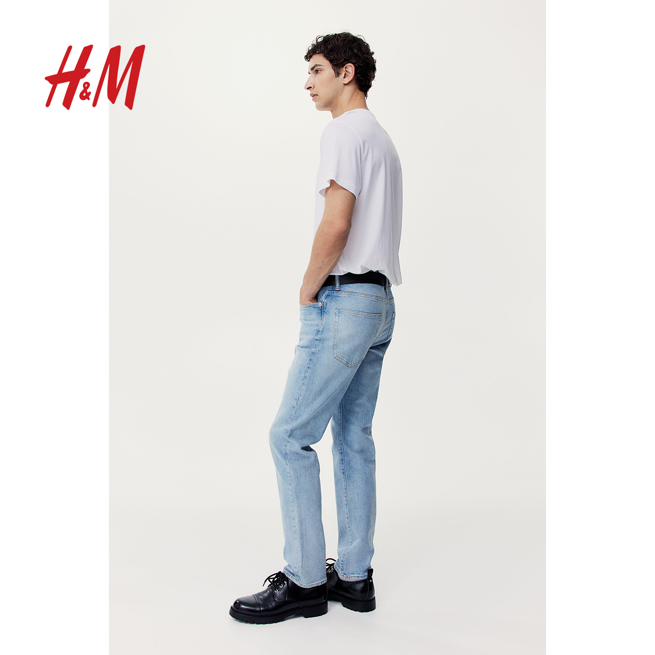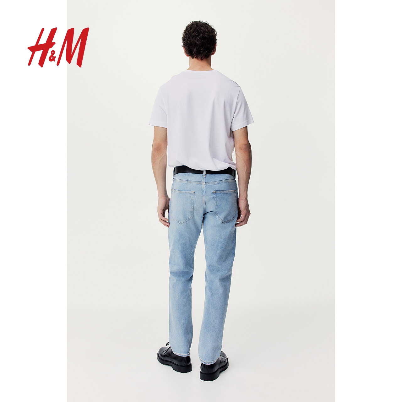 HM男装牛仔裤秋季宽松舒适弹性棉质直筒中腰牛仔裤5袋式0811993