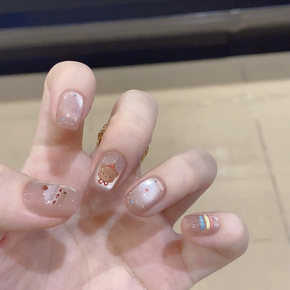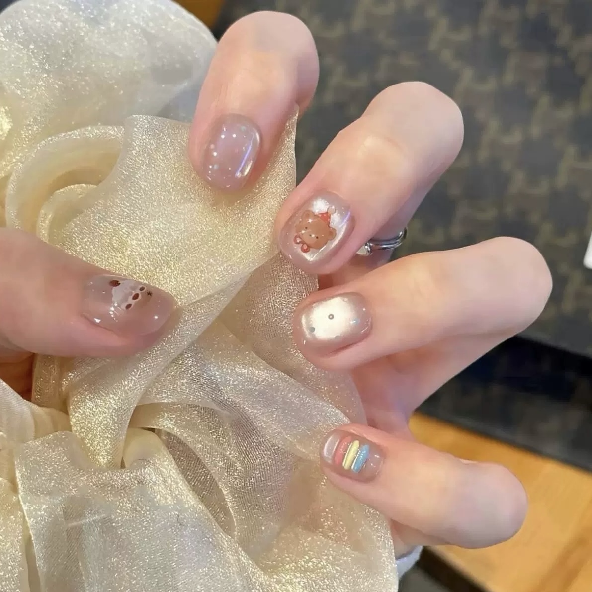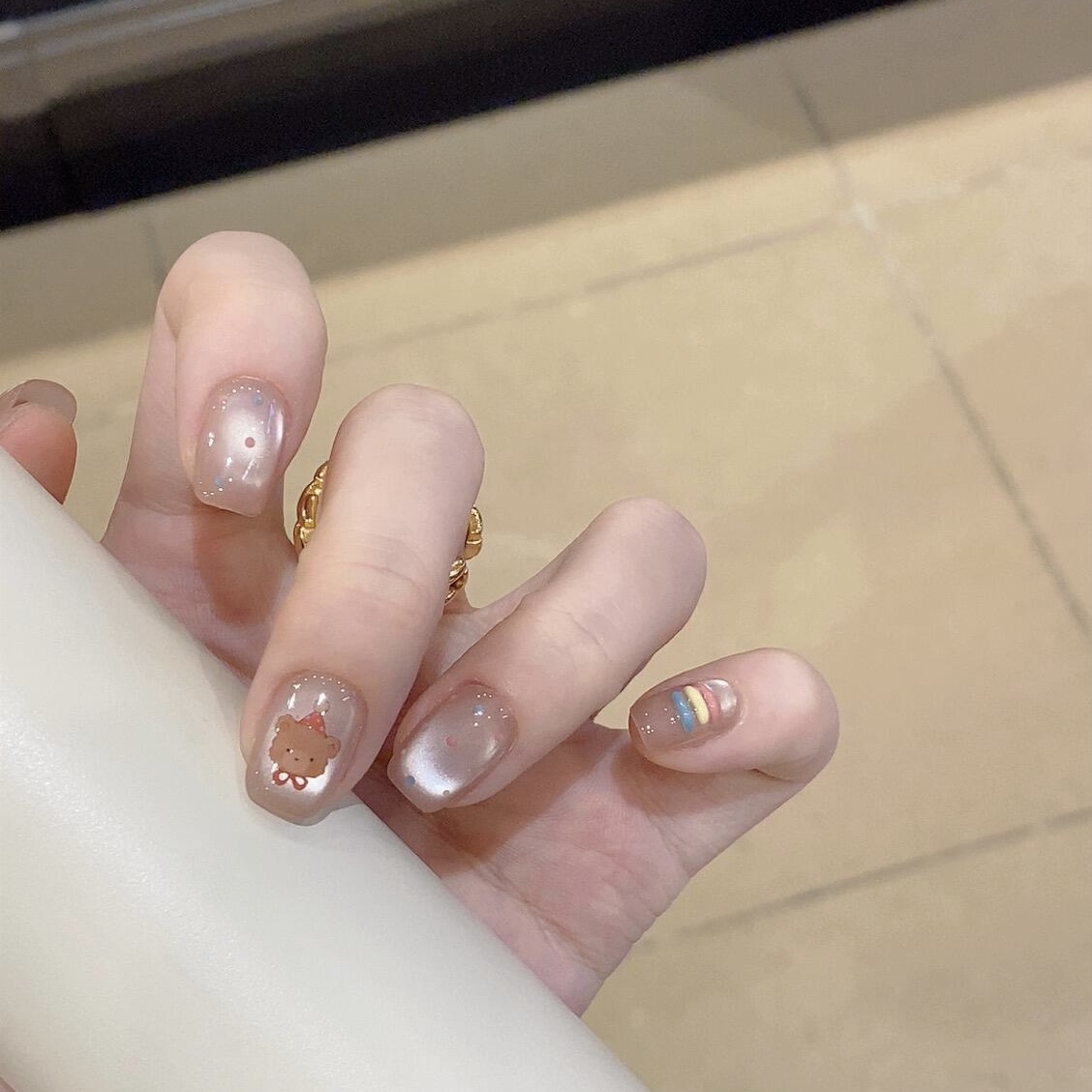 蛋糕穿戴甲的波点猫眼可爱短款豆豆美甲显白日常法式黑皮蝴蝶星星