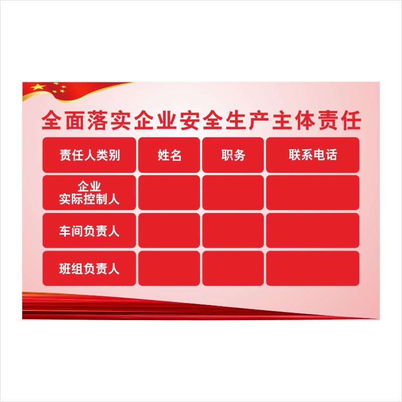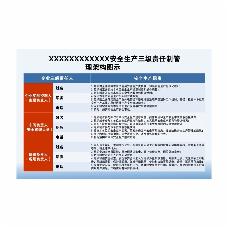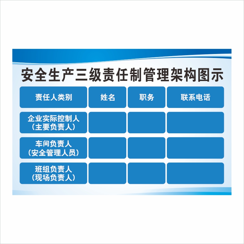 安全生产三级责任制管理架构图示 企业三级责任人安全生产职责 企业实际控制人丰要负责人 公示牌