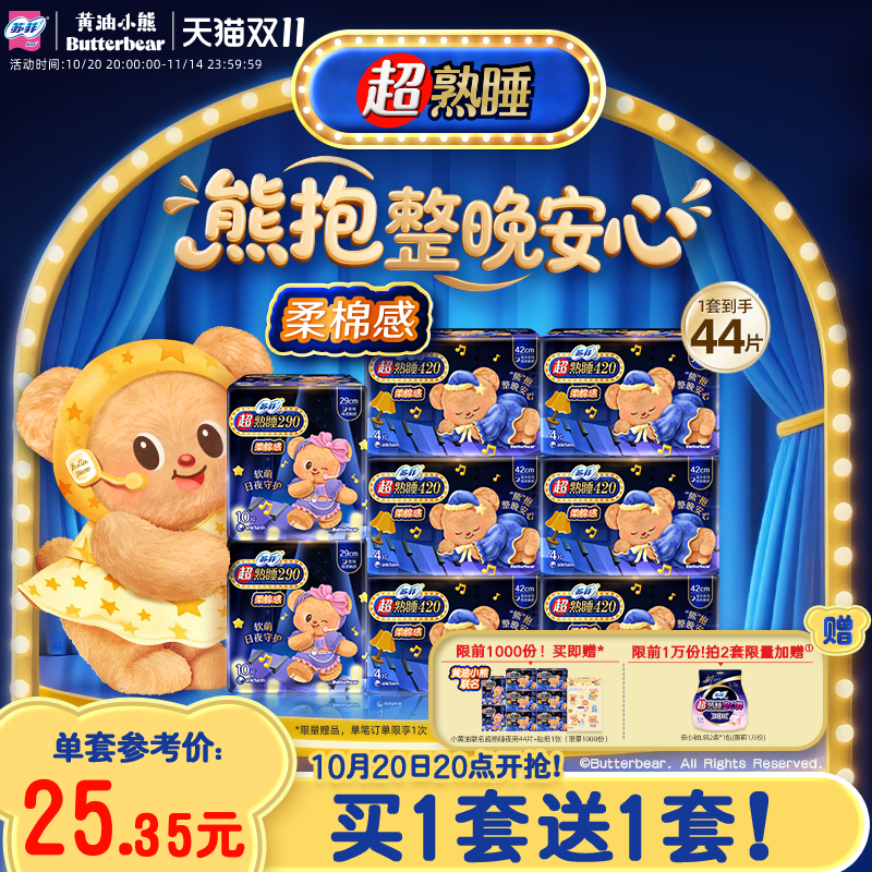 【黄油小熊】苏菲超熟睡柔棉感夜用超长卫生巾量大防漏420+290组