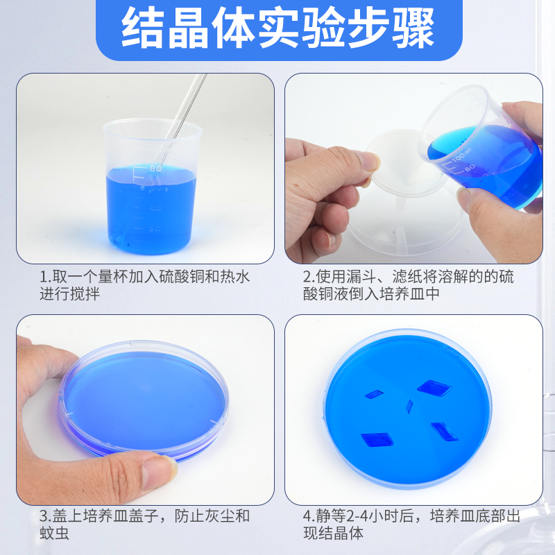 硫酸铜结晶实验套装晶体培养实验初中化学实验制取结晶初中科学八年级下册粉末实验器材