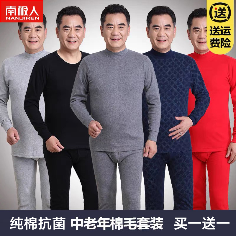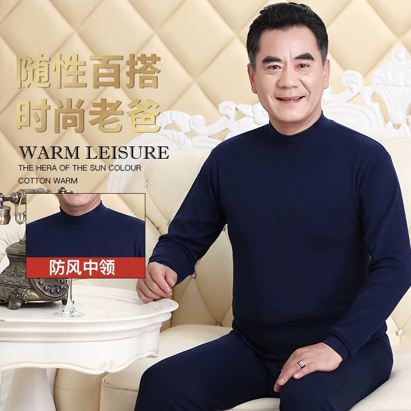 中老年人保暖内衣男士冬季秋衣秋裤纯棉套装高领打底全棉毛衫爸爸