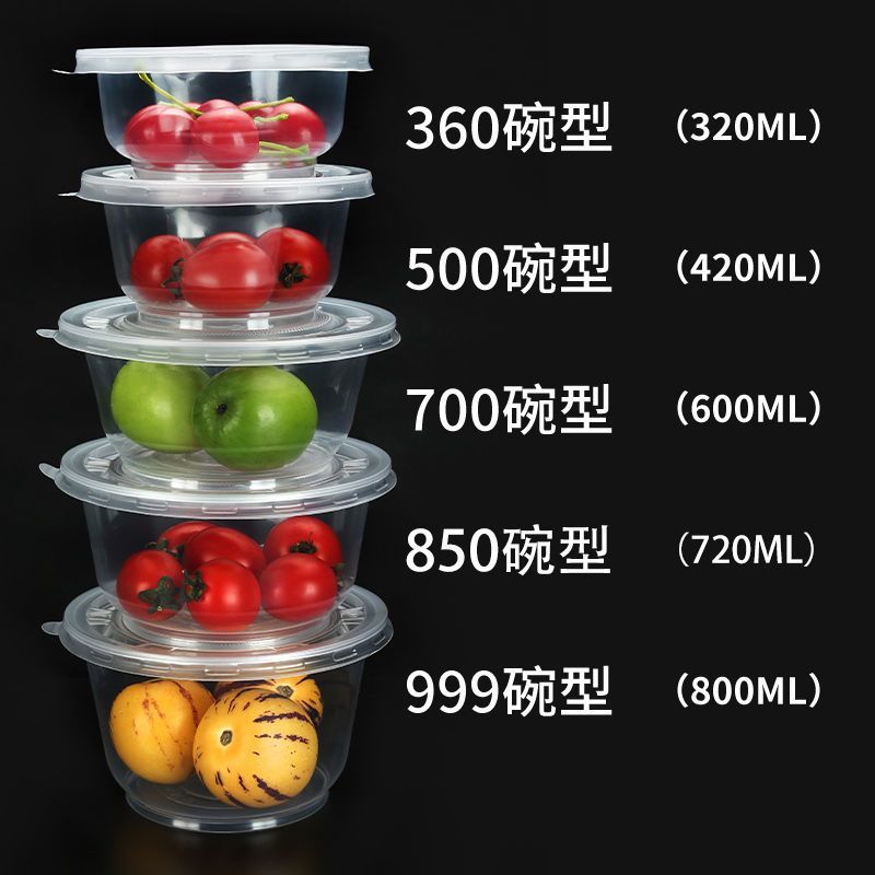 一次性碗塑料家用小碗套装圆形带盖饭盒打包餐盒餐具冰粉商用碗筷