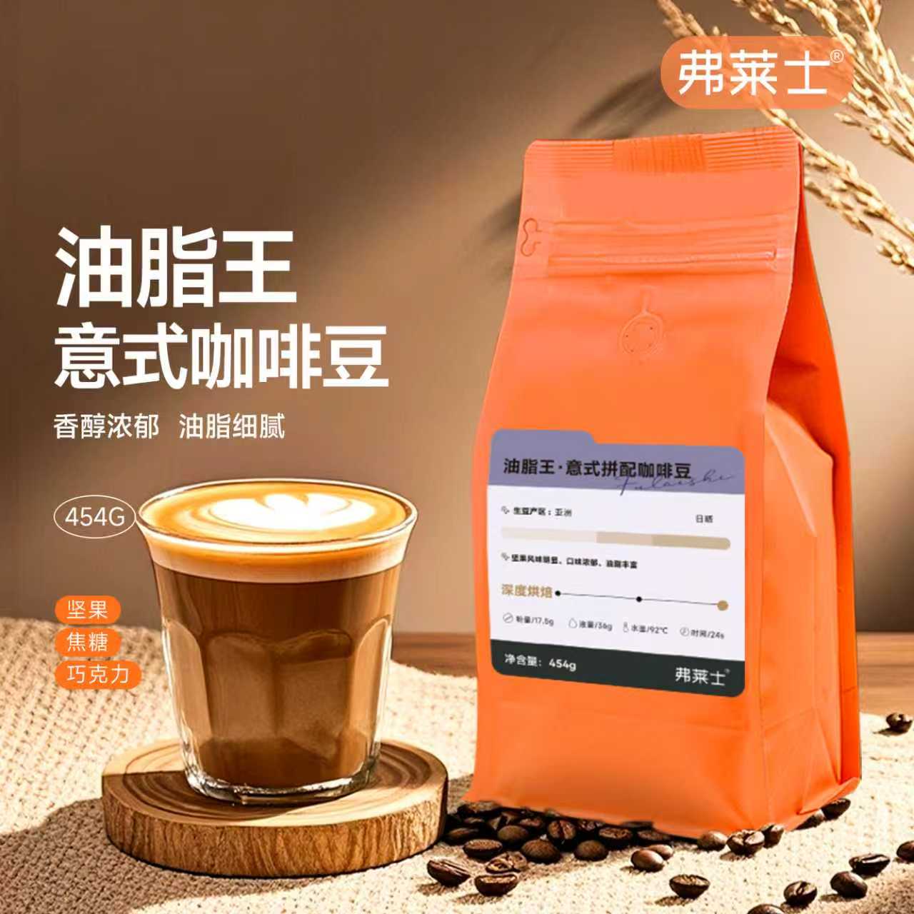 弗莱士油脂王意式咖啡豆454g 新鲜现磨手冲商用拿铁美式黑咖啡粉