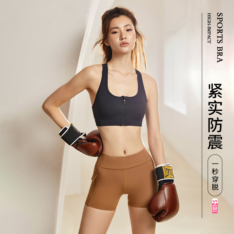 佑美高强度防震运动内衣女士带胸垫健身外穿瑜伽背心拉链运动文胸