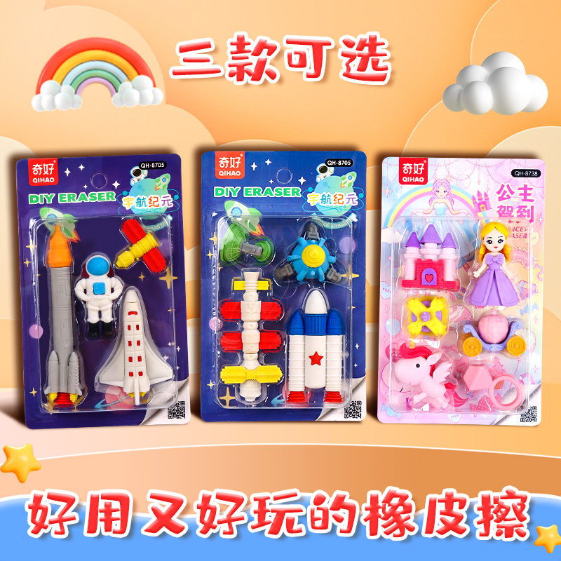 橡皮擦无屑超干净小学生专用橡皮卡通拼装太空宇航员火箭飞机趣味造型不留痕幼儿园六一儿童节文具可拆卸象皮