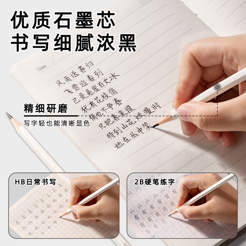 得力小白杆铅笔2b小学生无毒考试专用涂卡笔新一年级二年级2比铅笔幼儿园HB初学者练字笔高颜值写字六角铅芯