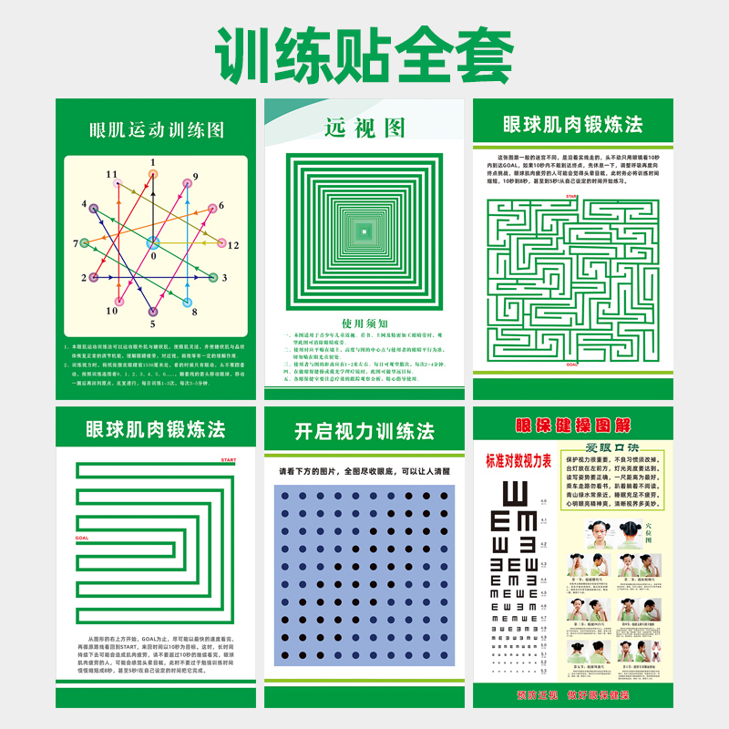 远视图眼肌运动训练墙贴散光视力视力训练图增视图远眺图训练视力表墙贴眼肌儿童眼保健操近视视力缓解疲劳图