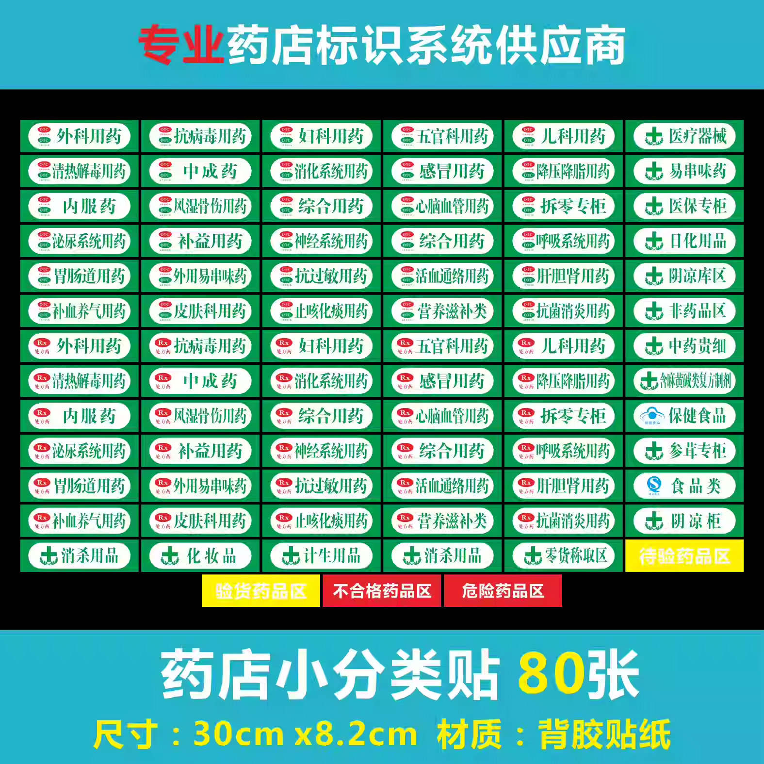 药品药店柜台外用医疗器械内服非医保药品现金非药品RX非处方药OTC处方药房分类指提示防水粘贴纸标牌定制作