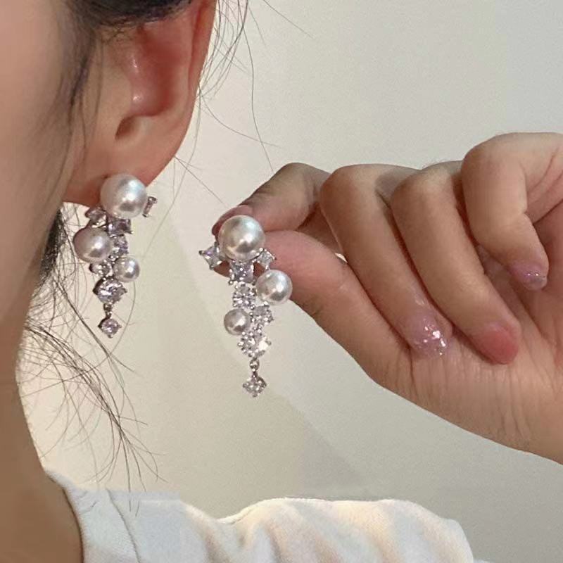 大小珍珠闪钻重工耳环气质耳饰奢华小众设计高级耳钉配饰富家千金