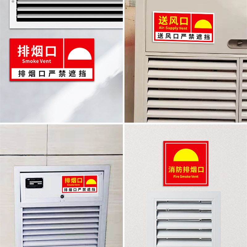 热销消防排烟口标识牌贴纸正压送风口提示牌出风口墙贴机械风机排