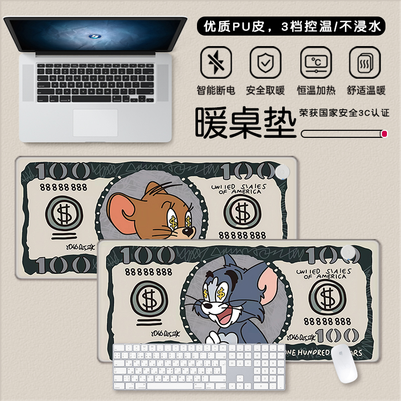钞票加热鼠标垫超大号冬季个性创意发热暖手冬天办公室电热桌面垫