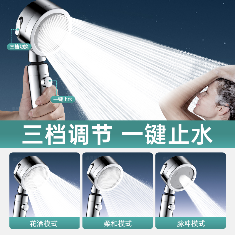 增压花洒喷头超强淋浴头浴室家用加压浴霸热水器洗澡沐浴花晒套装