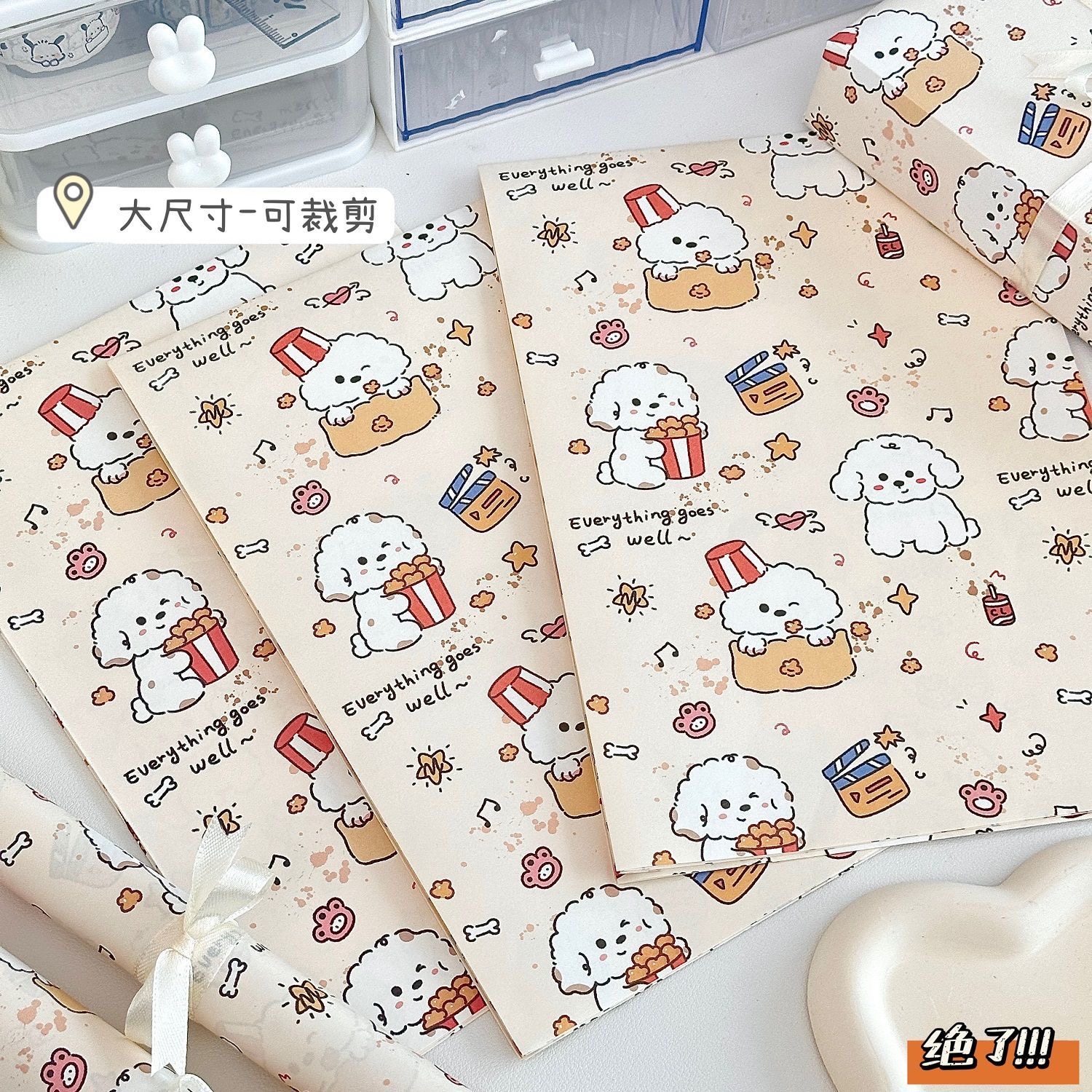新款爆米花小狗包装纸卡通可爱随意diy生日送礼加厚大容量打包纸